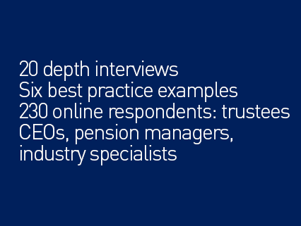 This research examined investment decision-making and governance in UK workplace pension schemes, recording insights of importance to trustees, industry and policymakers. It comprised 20 depth interviews and an online survey of 230 respondents: trustees, chief investment officers, senior pension managers and industry specialists. Six best practice case studies formed an important part of the report, which in addition to offering up-to-date insights, provided peer-to-peer guidance from research participants.
