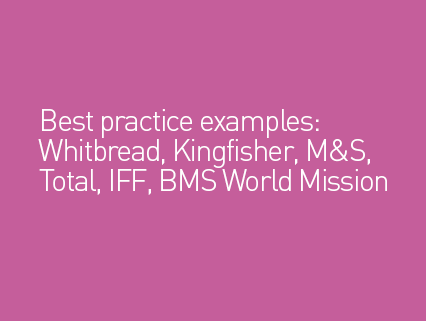 The six best practice examples featured covered schemes large and small, in the private and not-for-profit sectors: Whitbread, Kingfisher, Marks & Spencer, Total, International Flavours & Fragrances, and BMS World Mission.